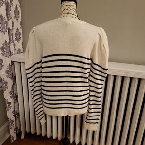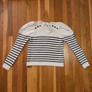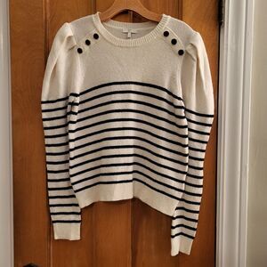 Joie Ruthine Sweater, Breton Stripes, Puff Sleeves, Buttons, Crew Neck, Sz M