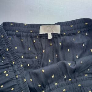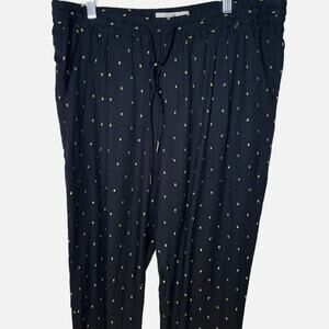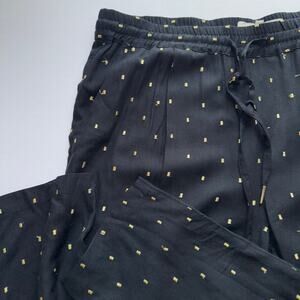 Joie Sayla Pants Women’s L Caviar Black Gold Dot Silk Blend Pull On Tapered Leg