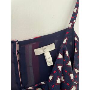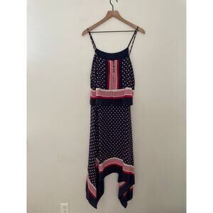 Joie Seia Handkerchief Dress Medium Navy Blue Silk Midi Triangle Print Casual