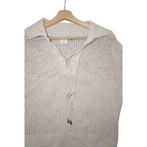 Joie Sequin Open Knit Collared Pullover Sweater Beige – Women’s Size M