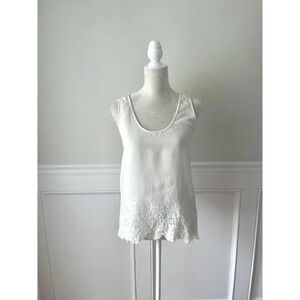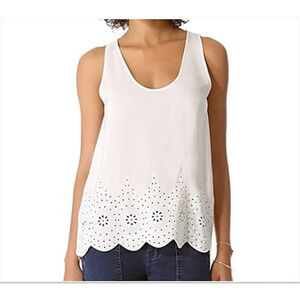 Joie Sevati Ivory Silk Eyelet Blouse Scalloped Hem M