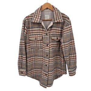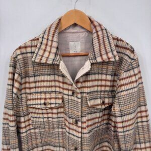 Joie Shacket Womens Small Cream Brown Black Plaid Polyester Wool Blend Pockets