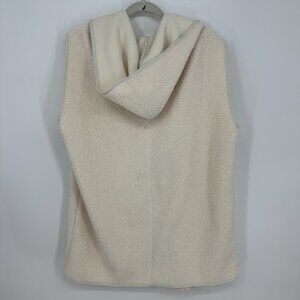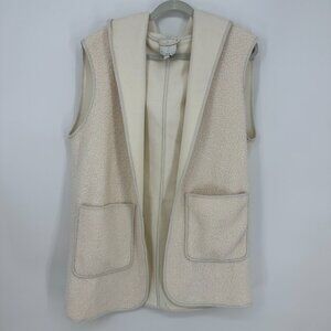Joie Sherpa Fleece Hooded Vest L Open Front Relaxed Fit Long Pockets Cream
