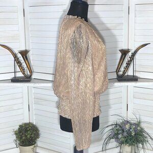 Joie Shimmer Blouse Smocked Waist Long Sleeve Chiffon Silver Gold Metallic Sz L