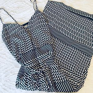 Black and white geoprint maxi dress. Shorter maxi dress, hits above the hands.adorable gold button details. Only worn once for 2 hours! Like new!