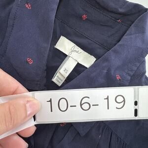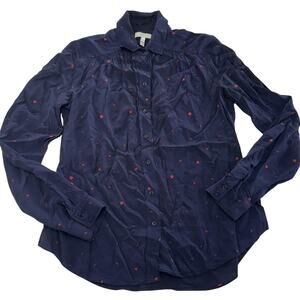 Joie Shirt Womens XS Blue Ladybug Embroidered Button Down Long Sleeve Blouse