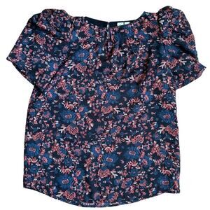 Joie Short Sleeve Floral Blouse Black, Red & Blue S
