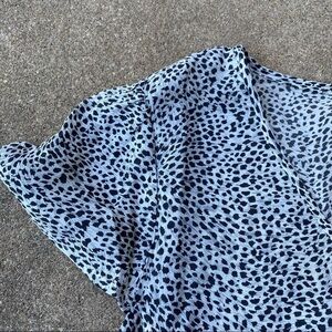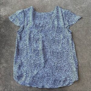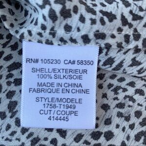 Size small Features: v neck. Flutter short sleeves Material: silk Color: black/white Condition: excellent preowned condition