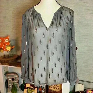 Joie - Silk Mauro Metallic Top Grey Silver Women’s Size Small Semi-sheer Blouse