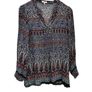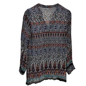 Joie Silk Paisley Boho Print Long Sleeve Sheer Tunic Blouse Small