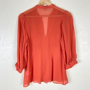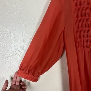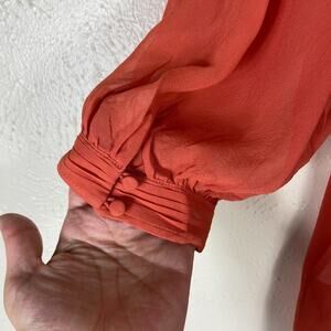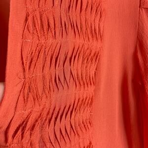 Joie Silk Peasant Blouse Size XS Sheer Orange Pintuck Frayed Edge Balloon Sleeve