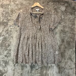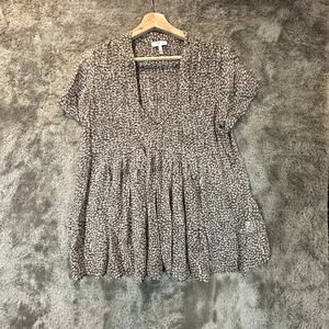 Joie Silk Pintuck Floral Shirt Blouse Top S Small Brown Flutter Sleeves