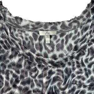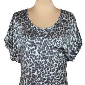 Joie Silk Shift Dress Sz.M Gray Leopard Print Satin Short Sleeve Mini Basic Boho