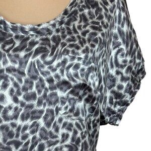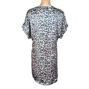 Joie Silk Shift Dress Sz.M Gray Leopard Print Satin Short Sleeve Mini Basic Boho