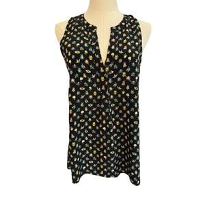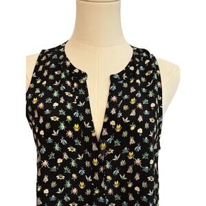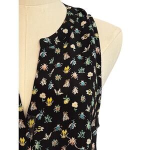 Joie Silk Sleevless Faux Wrap Ruffle Blouse Bees Flowers Honeybees Summer Light Novelty Tank