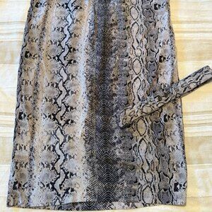 Joie Silk Snake Print Sheath Dress – Black/Grey, Size S, Snap Belt