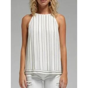 Joie Silk Tank Top Womens XS White Silver Zelpha Striped Sheer Blouse Silk