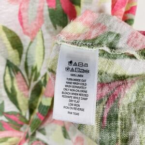 Joie Size Large Tropical Floral 100% Linen Boxy Cropped T-Shirt Top Pink Green