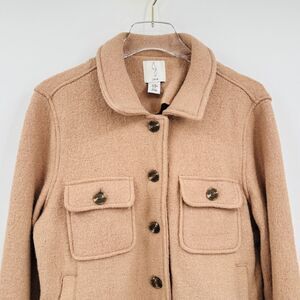 Joie Size Medium Tan Wool Long Sleeve Button Front Shackle Jacket Coat
