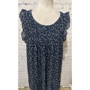 Joie Sleeveless Silk Prairie Dress Navy Blue Floral Print Pintuck & Ruffles L
