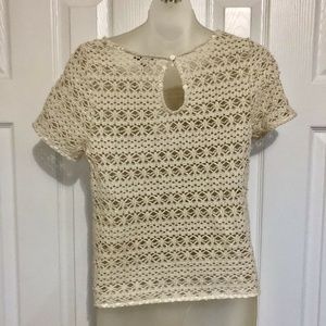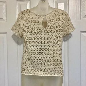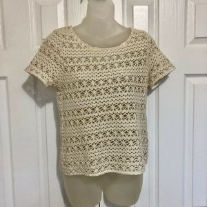 Joie Small Crochet Sweater Shirt Blouse Cream Crew Neck Short Sleeves