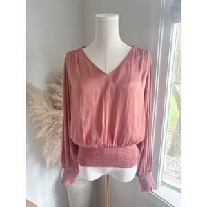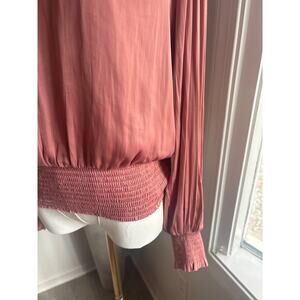 Joie Smocked Puff Sleeve Blouse Womens Small Mauve Dusty Rose Pink Top