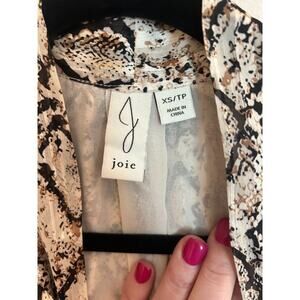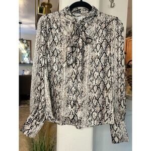 Joie Snake Print Tie Neck Balloon Sleeve Button Up Blouse Size XS 0-2