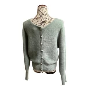 Light green, fuzzy-textured sweater