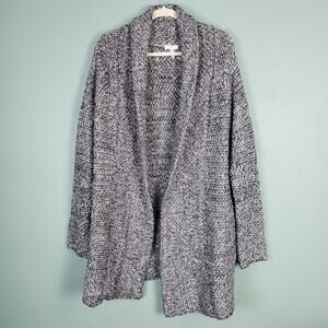 Joie Solone Metallic Gray White Black Sweater Open Chunky Soft Cardigan Large