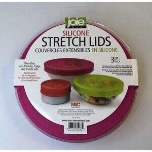 BRAND NEW NEVER BEEN TAKEN OUT OF THE PLASTIC JOIE SILICONE STRETCH LIDS REUSABLE STORAGE CONTAINERS 3 PACK ECHO FRIENDLY GREAT KITCHEN STORAGE CONTAINERS FOR ANY ONE