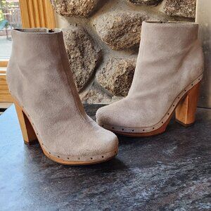 Joie Suede Taupe Dewitt Platform Clog Booties Size EU 37.5/ U.S. 7.5