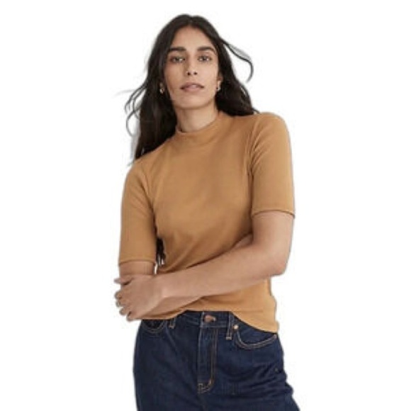 Joie Super Soft Ribbed Mock Neck Lightweight Sweater Top With Short Sleeves