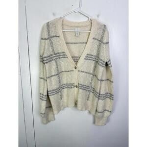 Joie Sweater Womens L Boucle V Neck Cardigan Button Front Neutral Grandpa Preppy