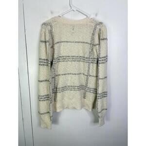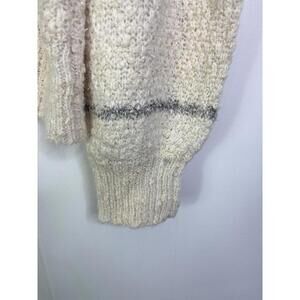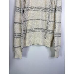 The Joie Women's Boucle V Neck Cardigan in size L is a stylish and versatile piece perfect for various occasions including travel, casual, workwear, and business. This chunky-knit sweater features a striped pattern in a neutral beige color with a V-neckline and button front closure. With long sleeves and a lightweight feel, it is ideal for the winter, fall, and spring seasons. The cardigan also includes pockets and an open style, making it both functional and fashionable. The preppy theme adds a classic touch to any outfit, making it a must-have for any wardrobe.