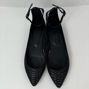 Joie Sz 9 Temple Black Embossed Leather Ankle Wrap Ballet Flats Pointed Toe