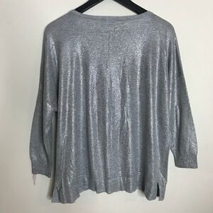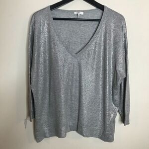 Joie Sz M shiny silver metallic tone 3/4 sleeve t shirt