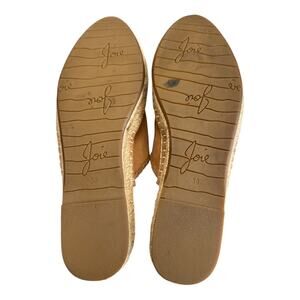 Excellent preowned condition these beautiful slide on mules by Joie R a gorgeous suede. Almond shaped toe and hand, sewing all the way around the upper foot area. Rubber souls keep you safe. Two cute tassels on each foot. Add a bit of elegance. Rope soul. A size 39 is equivalent to a size 8 to 8 1/2. The seller is a size 8, and the last photo shows how the fit is.