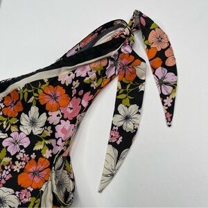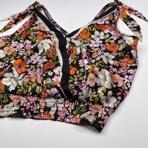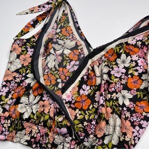 Joie Tank Top Satin Floral Boho Bohemian Gypsy Peasant Hippie Summer Spring Romantic Coquette Festival V Neck Shoulder Tie