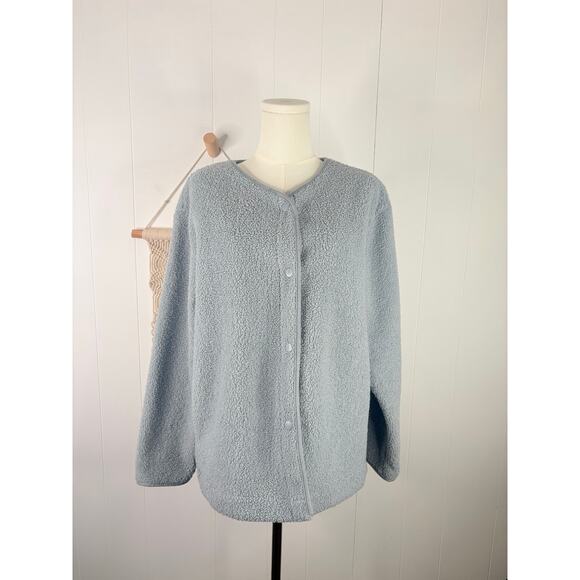 Joie Teddy Sherpa Shacket Size Medium Blue Snap Jacket Coat