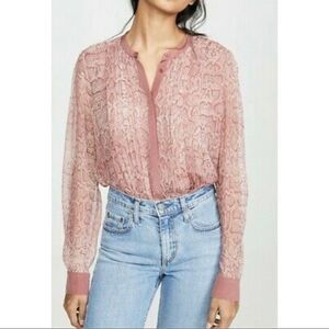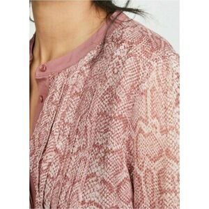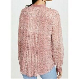 Joie Tessa pink snake print pleated long sleeve silk blouse