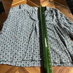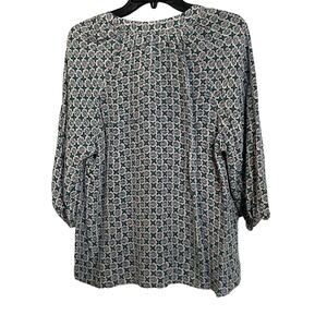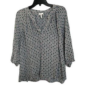 Joie Top Addie Geo Diamond Deep V Blouse 100% Silk Sz L Elastic Cuffs Pullover