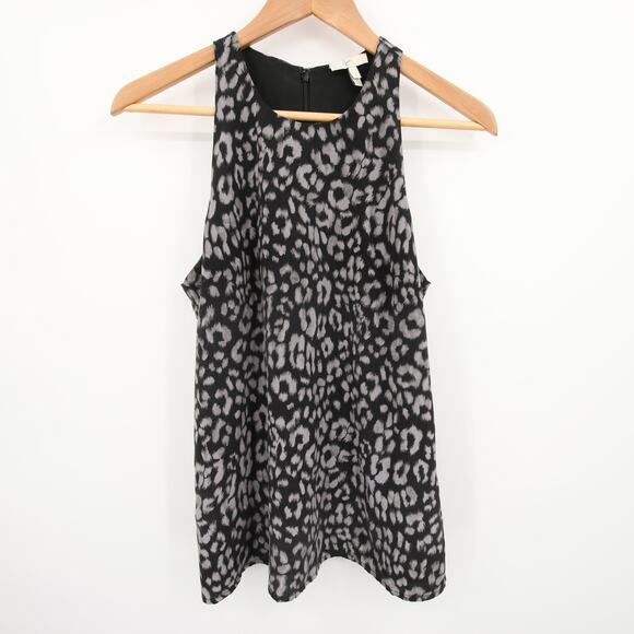 Joie Top Black Gray Leopard Print Pattern Sleeveless Round Neck Silk Size Small