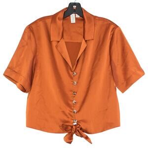 Joie Top Cottage Academia Coastal Grandma Boho 70s Satin Tie Button Up Orange 8