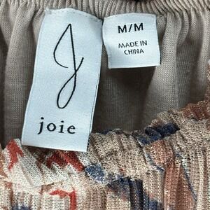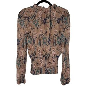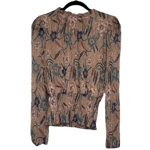 Joie Top Size M Gold Shimmer Pleated Floral Print Long Sleeve Shirt Mesh Chic