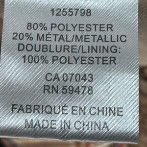 The Joie Top in size M is a chic and shimmering long sleeve shirt with a floral print and pleated accents. Made from a luxurious blend of 80% polyester and 20% metal, this blouse features a mesh fabric that adds a touch of sophistication to the overall look. The gold color and metallic theme make it a stylish choice for any woman's wardrobe, perfect for adding a statement to any outfit.