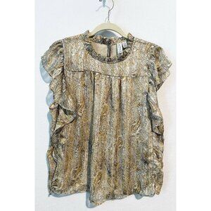 Joie Top Womens Large Beige Paisley Gold Metallic Ruffle Flutter Sleeve Boho