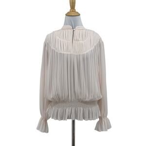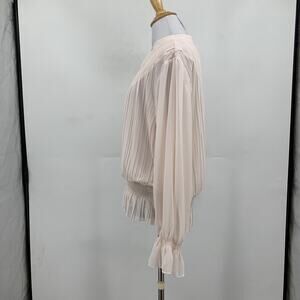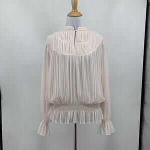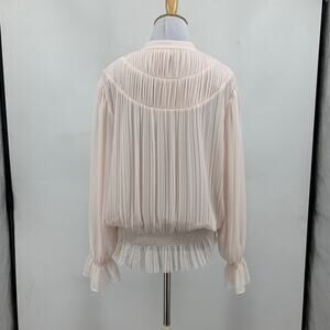 JOIE TOP WOMENS M MEDIUM PEARL PINK MUMBI ACCORDION PLEATED SMOCKED SHEER BLOUSE
