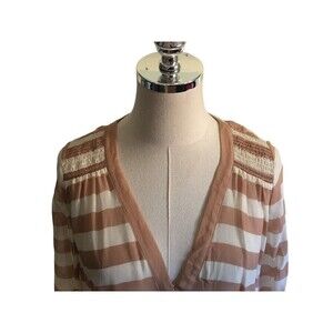 Joie Top Women's Size Small Brown White Stripes Long Sleeves Sheer