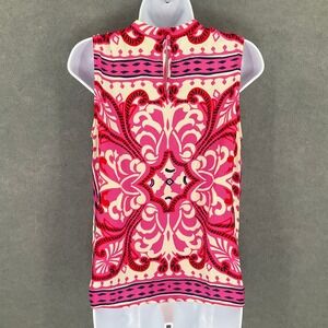 Keywords: Joie, sleeveless top, mock neck, blouse, pink patterned, geometric print, womens top, casual, dressy, size M, contemporary fashion