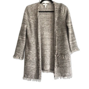 Great condition lightly worn Joie Fringed Edge Tweed Open Sweater Coat